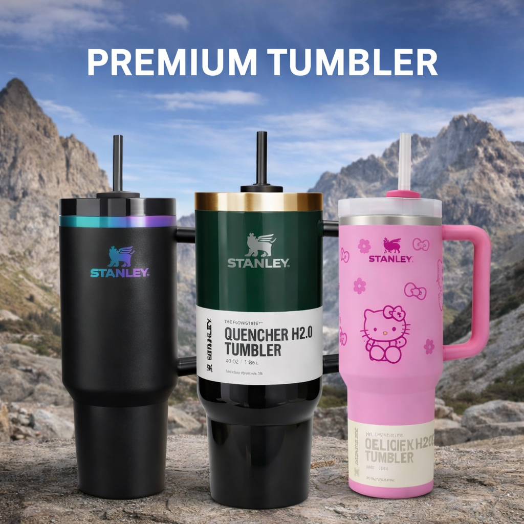 blends premium style with everyday performance. Crafted from high-quality stainless steel with double-wall insulation, these tumblers keep your drinks cold or hot for hours. From sleek, modern finishes to fun and trendy designs, each tumbler is made to fit every lifestyle—whether you’re commuting, working out, or enjoying outdoor adventures. With a comfortable handle, reusable straw, and durable construction, the Stanley Tumbler Collection delivers long-lasting quality, convenience, and a stylish hydration experience.